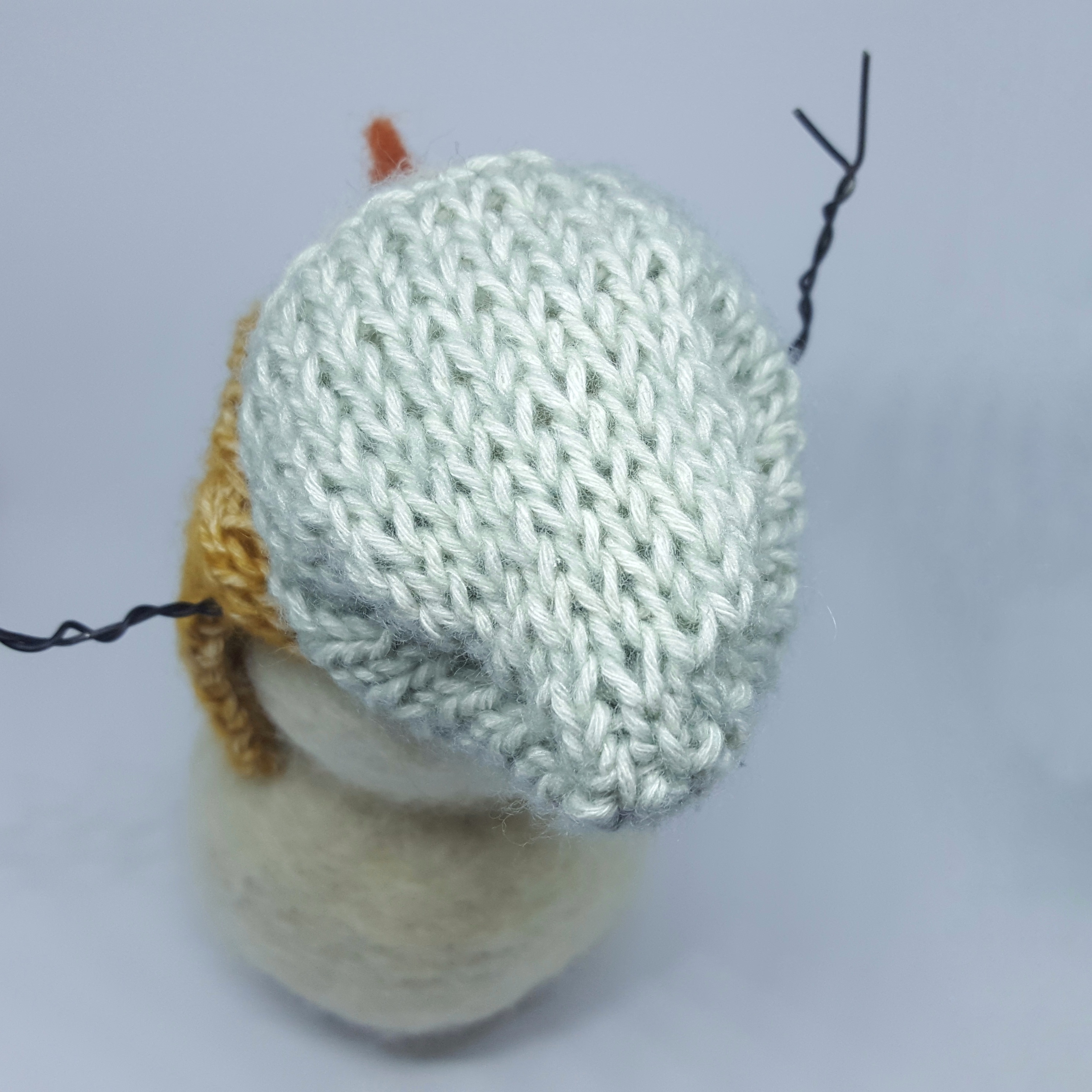 The shop also has an option to purchase an add-on so you can create the little scarf, but I decided to knit my own hat and scarf using some leftover yarn from the Hotel of Bees shawl. I think these colors complimented the snowman so nicely! My hat became a little hipstery, but it’s still fun :).