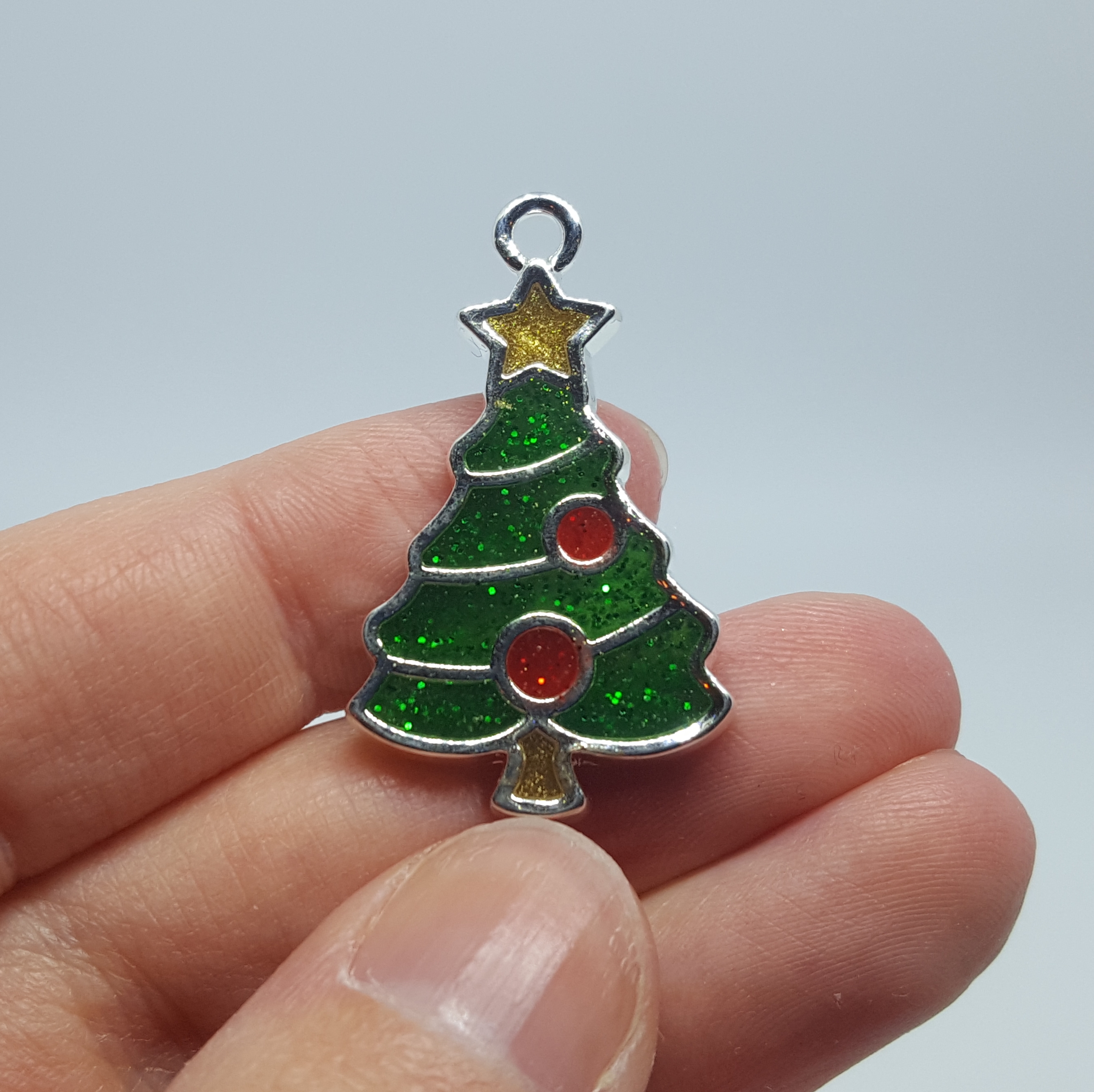 I decided to really contrast the color of the powders, and I thought a metallic clay would bring in a touch of that more traditional Christmas feel, so the accents on this ornament are silver.