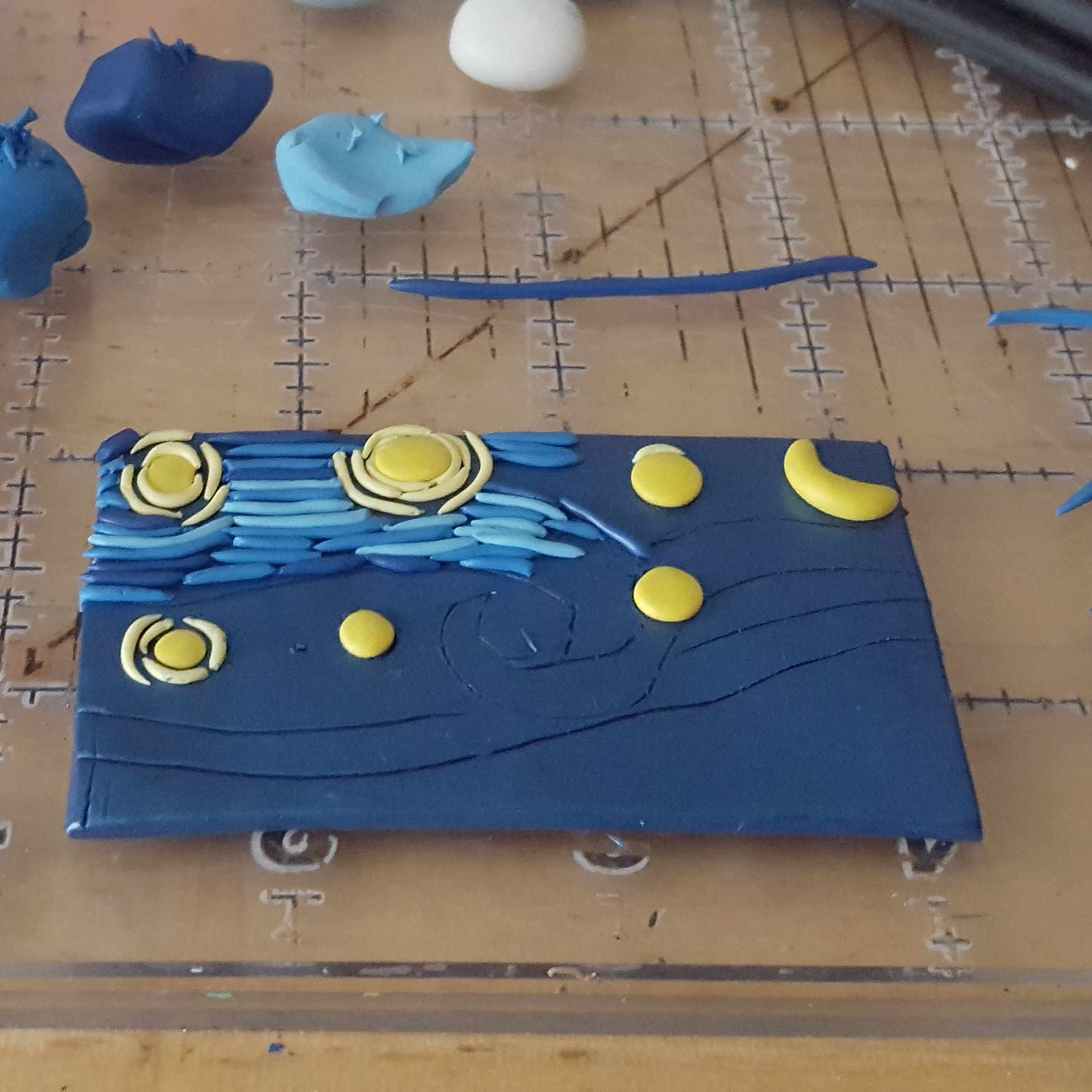Today’s tutorial focuses on a technique I messed with for the dragon inspired by Vincent van Gogh’s Starry Night painting. He has such a distinct style (one of my professors would kill me because I don’t remember the era his work is from), and it allows us to mimic the thick strokes of paint with polymer clay.
