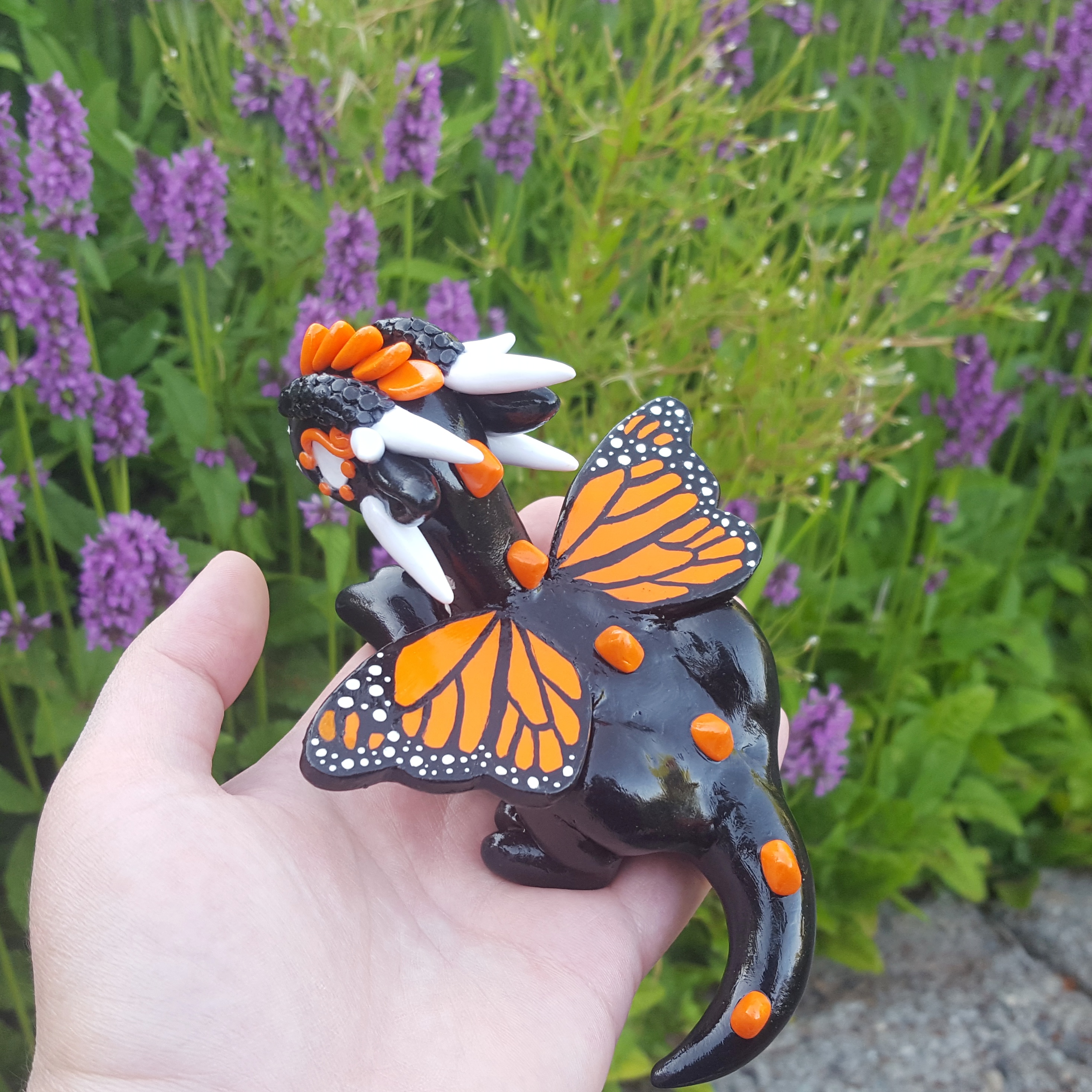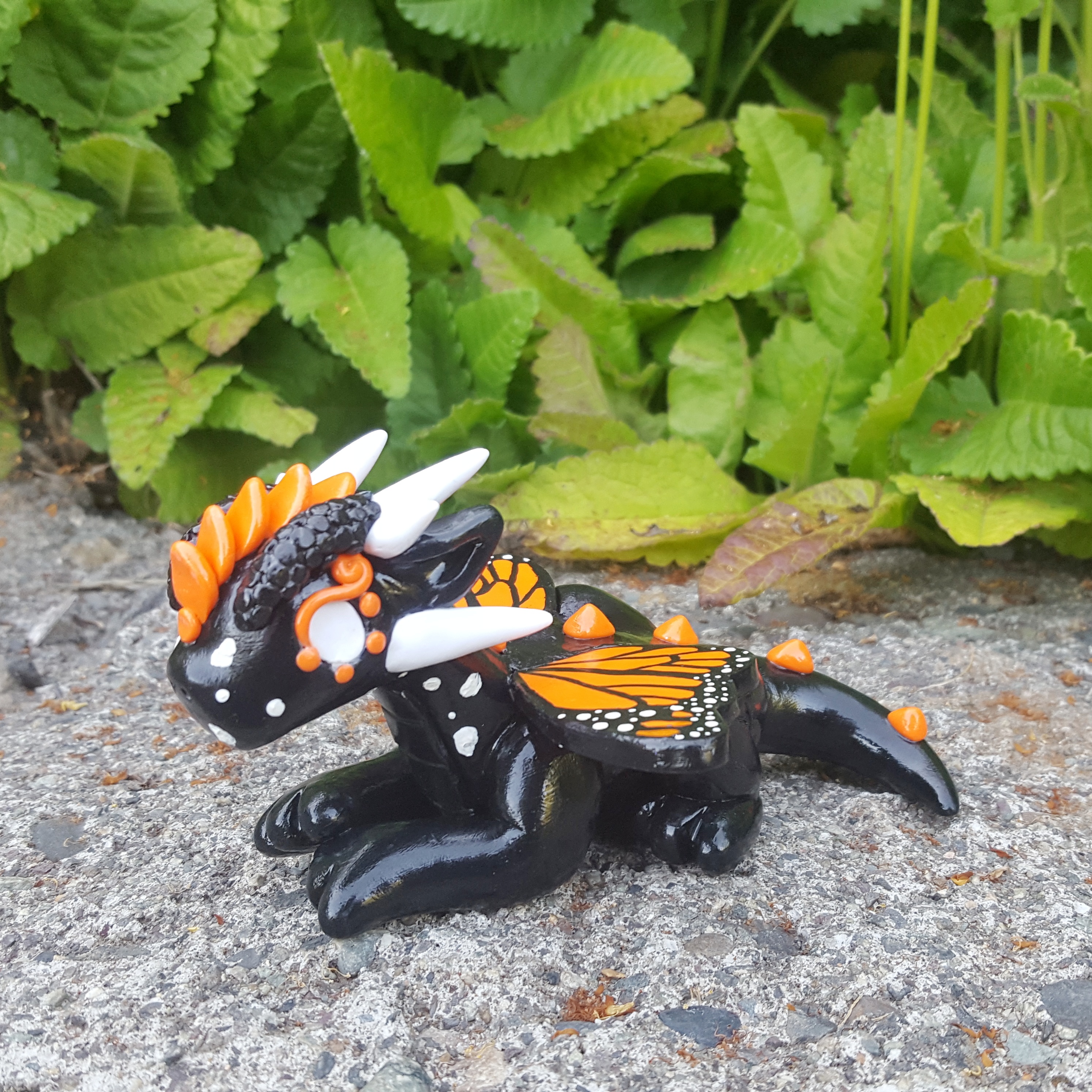And here’s the dragon I created using bigger versions of these wings. This is a dragon/monarch butterfly hybrid, so instead of dragon wings, I gave this little guy butterfly wings.
