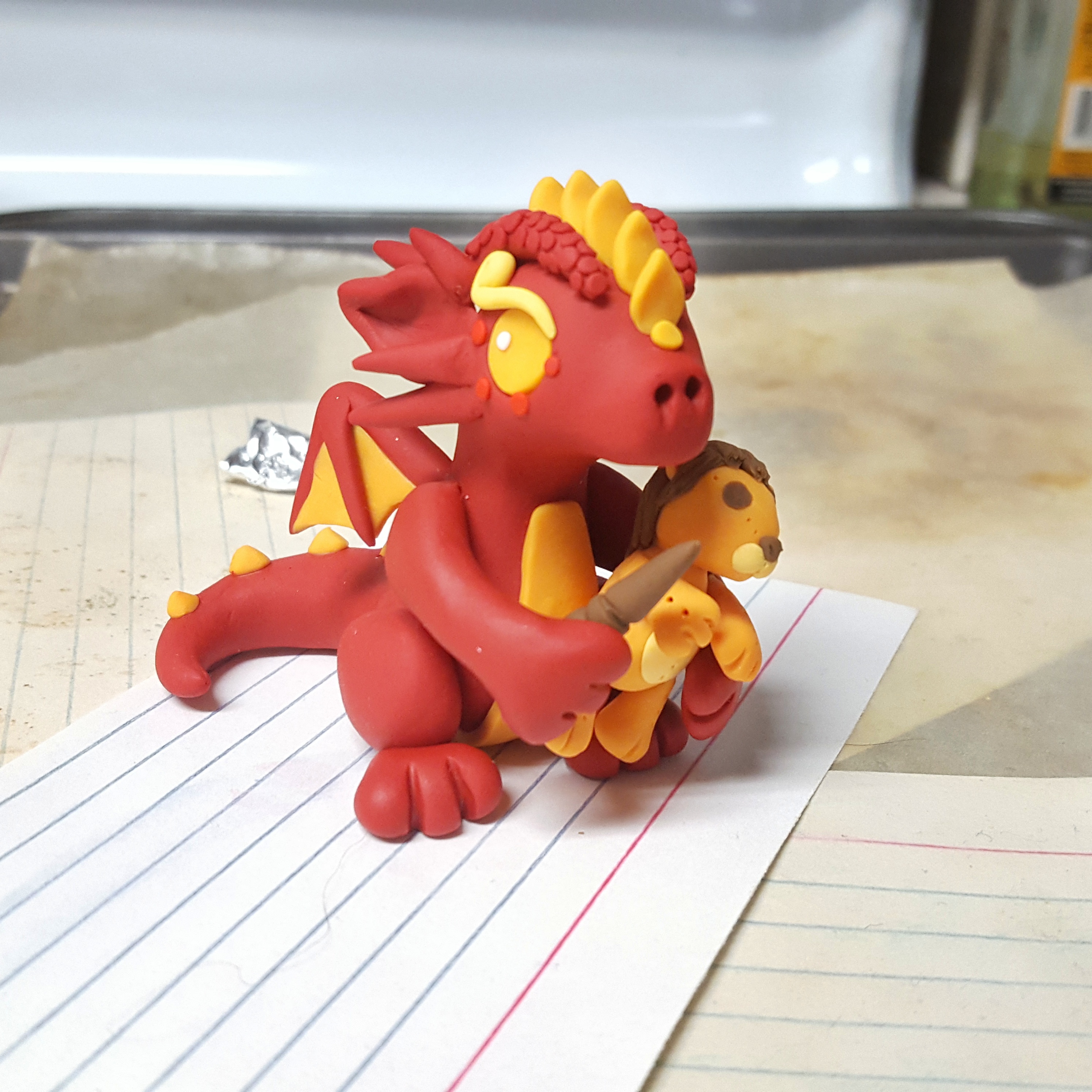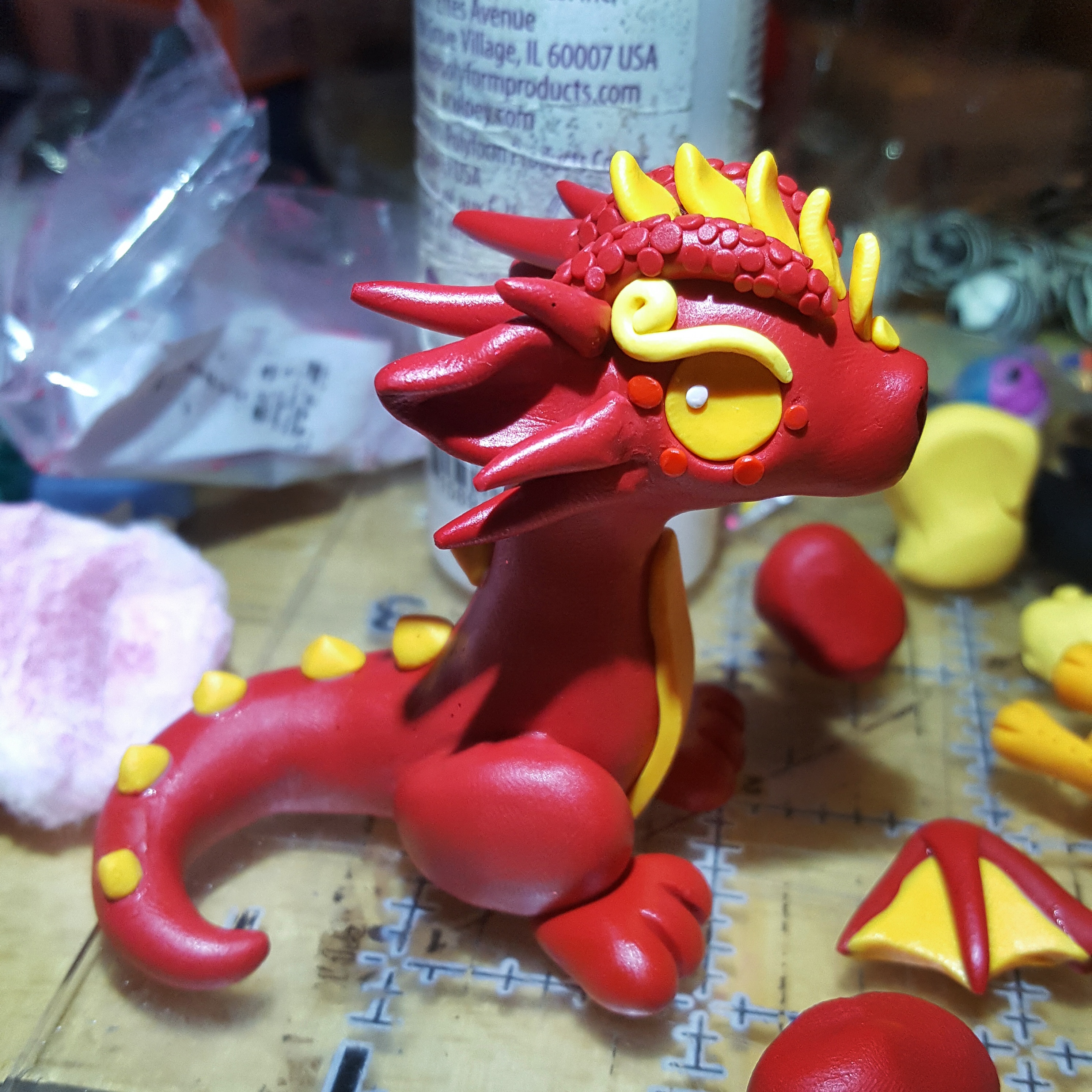 The theme for this sculpt was “magic wand.” Being a giant Harry Potter nerd, I had to make a little dragon holding his own little wand. I thought it’d be fun to make a house dragon instead of, say, a dragon based on a particular character. I chose Gryffindor for the most obvious reason, and I think the color combination of their house is the most striking of the four.