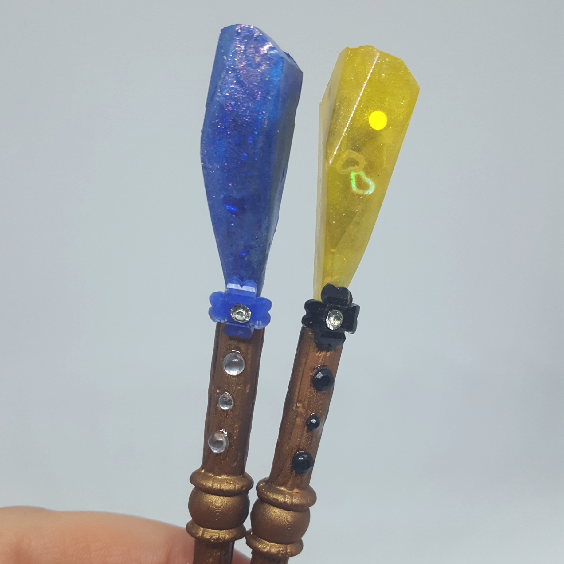Since the box has come out, there have been some really neat tutorials for the box that utilize adding bits and pieces of resin to decorate the wand. I loved how Creative Rachy used the crystal mold for a handle. I thought it was a really fun way to add some more Hogwarts house goodness.